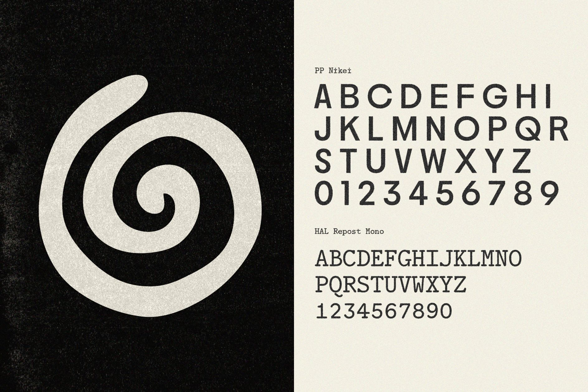 HAL Repost Mono provides structure: a friendly monolinear slab with rounded terminals, inspired by 1903's Post Monotone No. 2. The full type system (including VTC Carrie, VTC Marsha, Gothic 725) feels slightly off-kilter while staying completely legible.